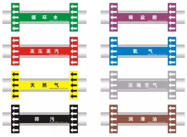 化工生产管线纵横交错,错综复杂,为了便于管理,在行业中规定了管线的基本标识,不仅便于生产工人操作,也有利于灭火救援中的操作。